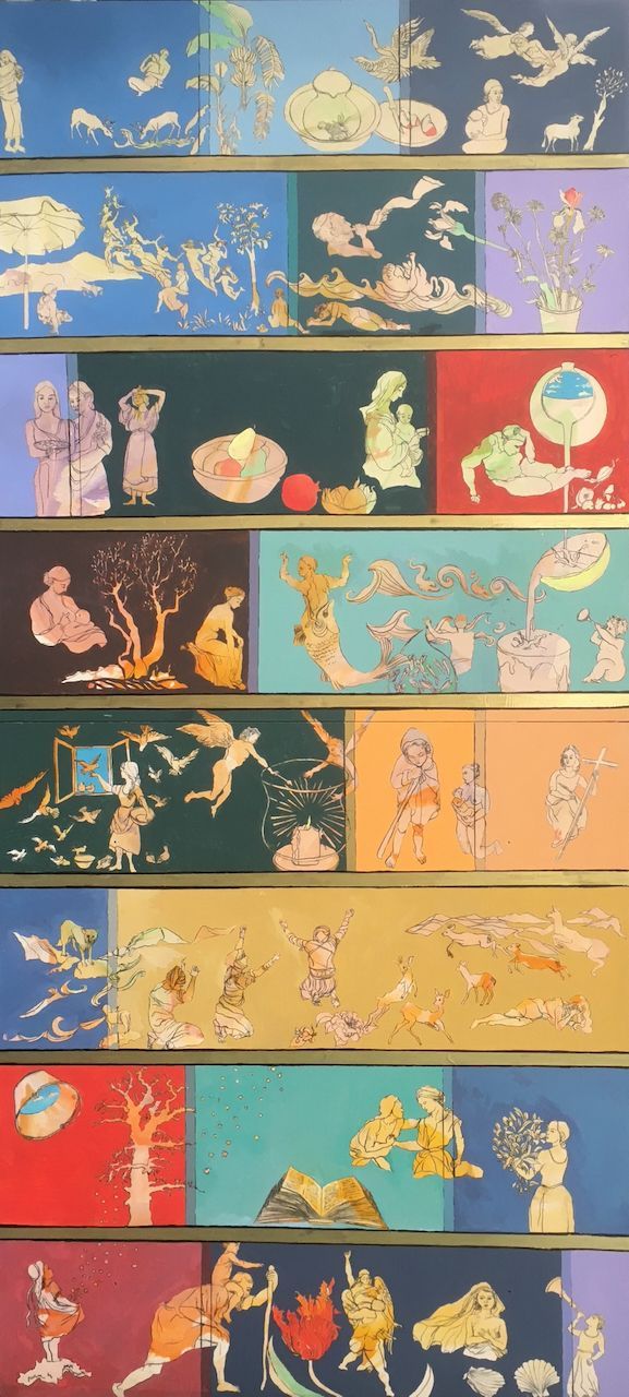 und Kreide und zeichnen sich durch dynamische, offene Bildräume aus.