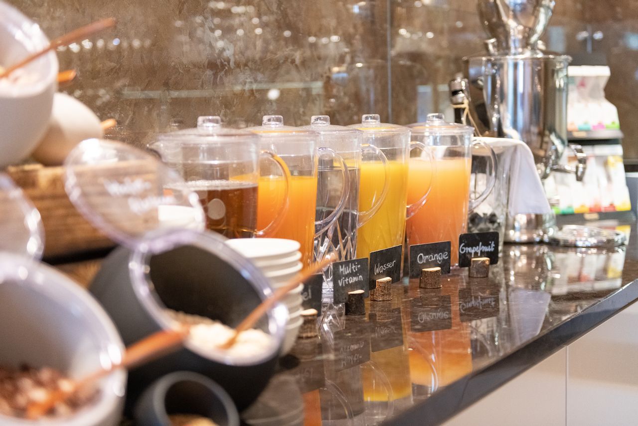 Freuen Sie sich auf ein All-inclusive-Frühstücksbuffet ohne Limit, inklusive vier verschiedener Säfte, Wasser sowie Kaffee- und Heißgetränken zum Selbstzapfen.