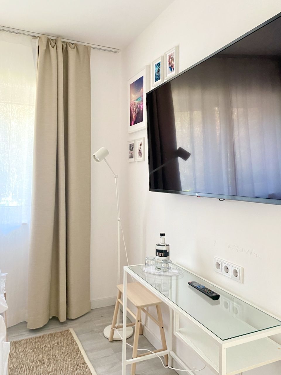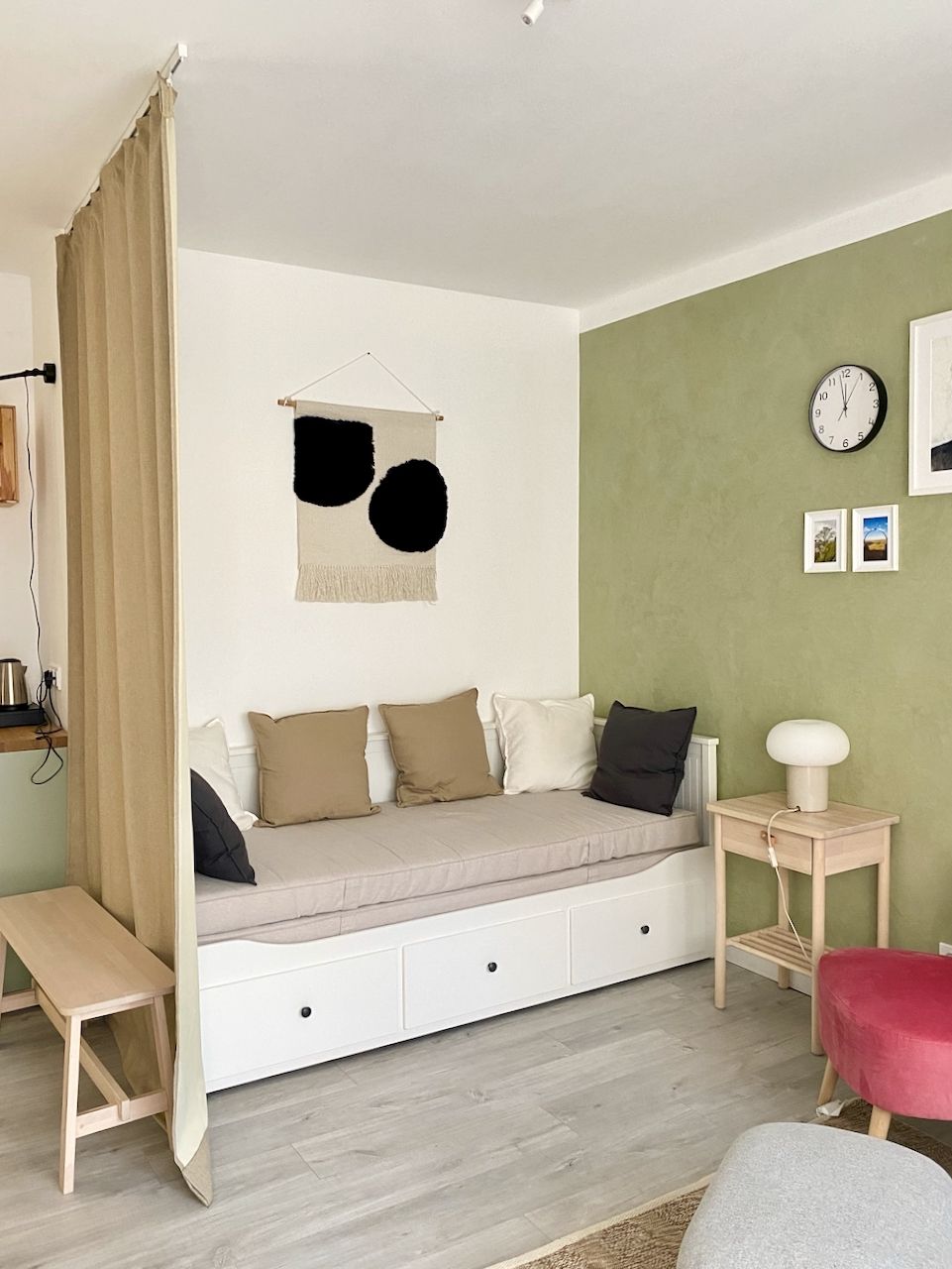 Das großzügige Apartment bietet einen separaten Wohn- und Schlafbereich. Im Schlafzimmer erwartet Sie ein klassisches 1,80 x 2,00 m großes Doppelbett mit durchgängiger Matratze für maximalen Schlafkomfort. Im Wohnzimmer steht eine ausziehbare Couch für bis zu zwei weitere Personen zur Verfügung (von einer Seite aus zugänglich). Ergänzt wird das Apartment durch ein Badezimmer sowie einen kleinen Eingangsbereich.